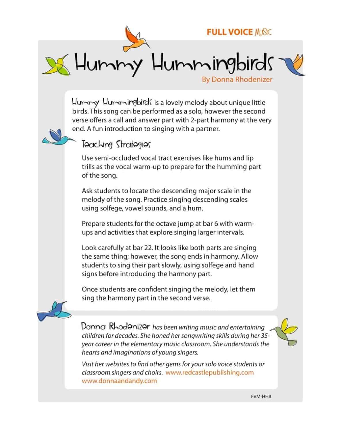 Song Download Packages include a PDF file and mp3 backing tracks. Teachers may: