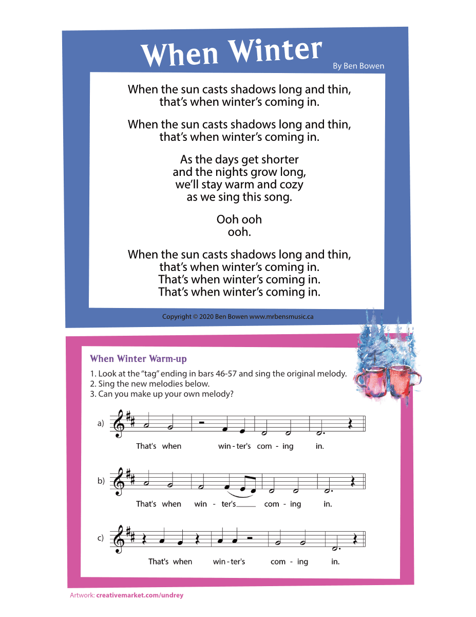 • ‘When Winter’ by Ben Bowen is giving me a SIMPLE YET BEAUTIFUL folk/pop song and I’m using it for my group class but I also gave it to a teen student who is going from Zero to Hero in her singing, and I’m really excited to see what she does with it. She latched on to the tune quickly and her singing tone is getting stronger, and THANK GOD for songs like Ben’s that are interesting to both the singer and the listener, not childish, easy to sing, and also emotional and beautiful. I will also use it in my Adult Group Class when we talk about tonal colours and choices in contemporary voice!